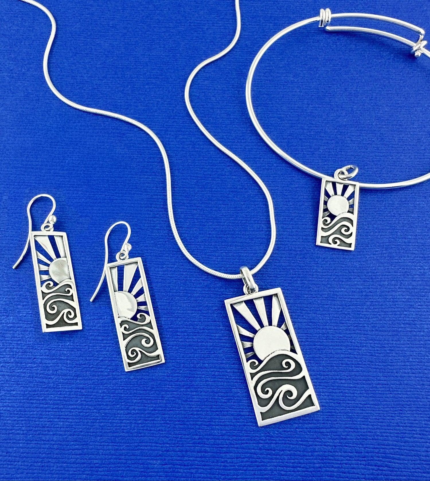 "Sunrise on the Bay" captures the beauty of dawn breaking over Narragansett Bay. Since the earliest days of settlement the Bay has been both the commercial and spiritual heart of Rhode Island. Please wear and enjoy this jewelry as a symbol Hope, Renewal and our Beloved Ocean State. We proudly offer this line of jewelry with a portion of every sale being donated to Save the Bay.