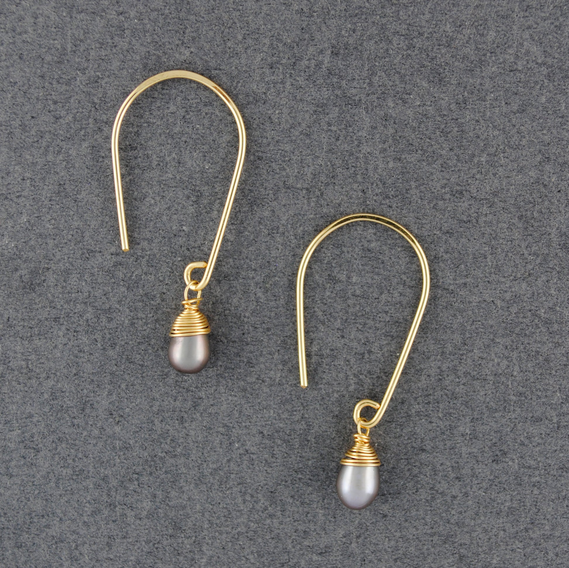 14K Gold Filled Oval Drop Grey Pearl Earrings