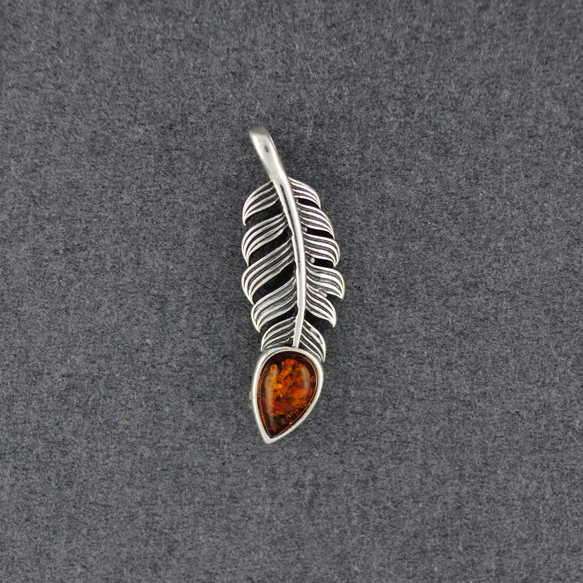 Amber is hardened tree resin from prehistoric forests 40 - 50 million years ago. Though its transparency and color varies, the most common colors are orange, yellow and brown. Amber can also range into milky whites and deep reds. Your piece was designed and set in sterling silver by Polish craftsmen. The amber carried at Green River Silver Co. comes from the Baltic region and is imported directly from Gdansk, Poland.