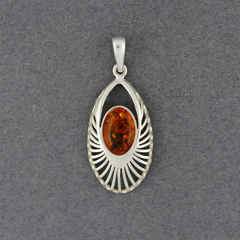 Amber is hardened tree resin from prehistoric forests 40 - 50 million years ago. Though its transparency and color varies, the most common colors are orange, yellow and brown. Amber can also range into milky whites and deep reds. Your piece was designed and set in sterling silver by Polish craftsmen. The amber carried at Green River Silver Co. comes from the Baltic region and is imported directly from Gdansk, Poland.