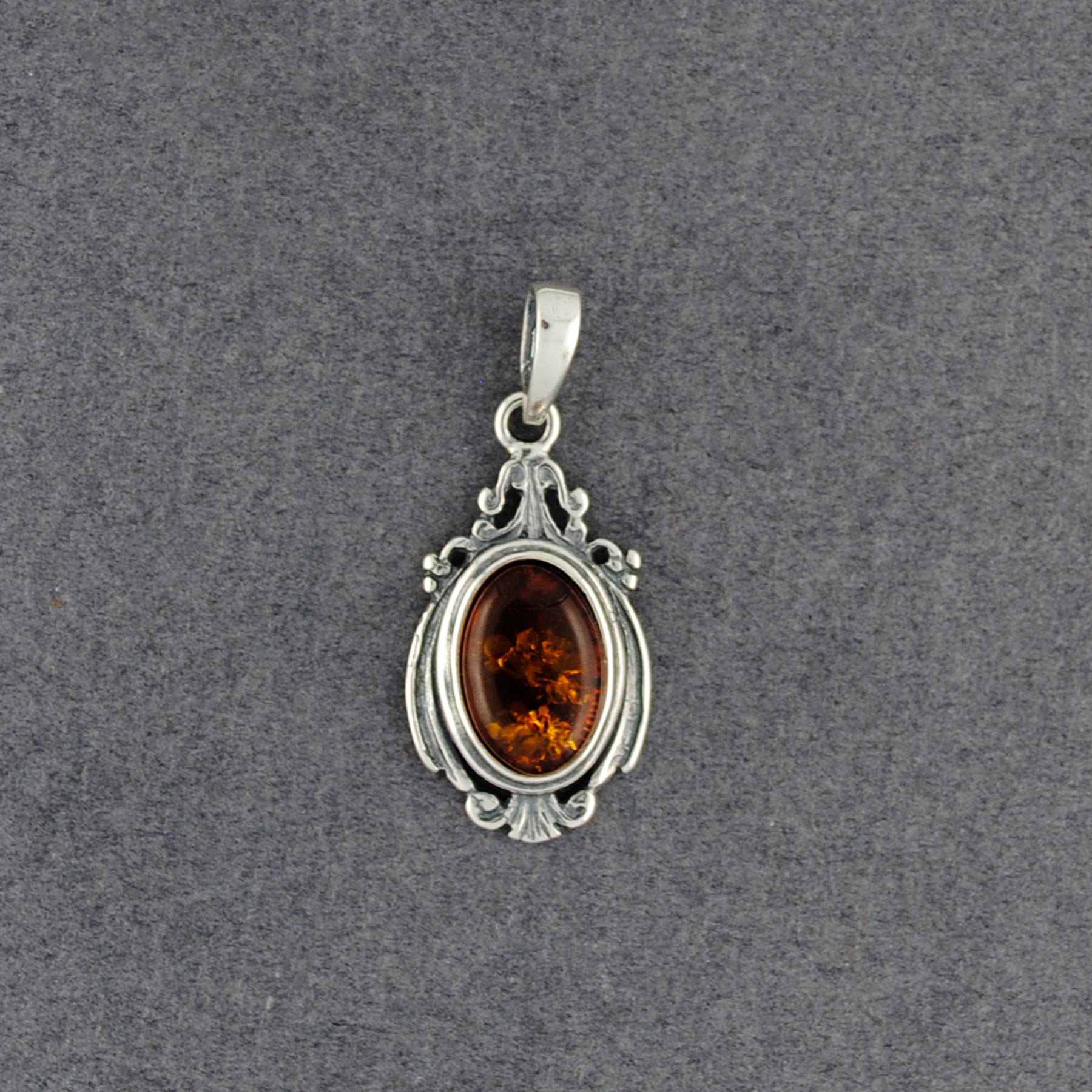 Amber is hardened tree resin from prehistoric forests 40 - 50 million years ago. Though its transparency and color varies, the most common colors are orange, yellow and brown. Amber can also range into milky whites and deep reds. Your piece was designed and set in sterling silver by Polish craftsmen. The amber carried at Green River Silver Co. comes from the Baltic region and is imported directly from Gdansk, Poland.