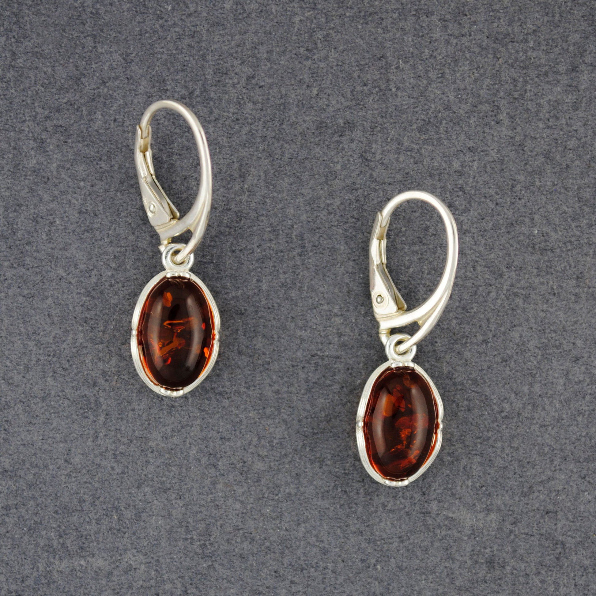 Amber Oval Earrings with Filigree Bezel
