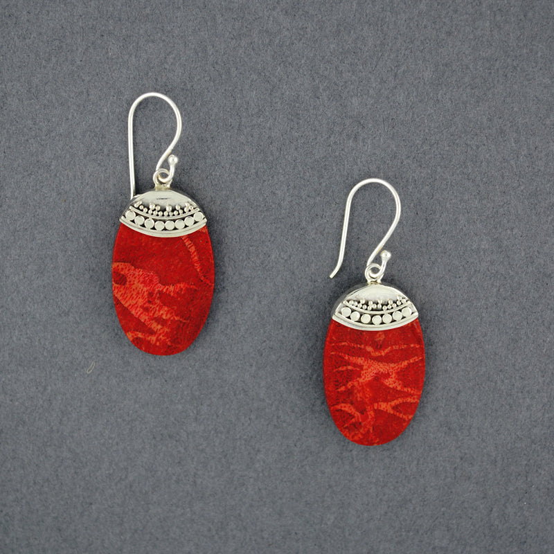 Coral Dotted Oval Earrings