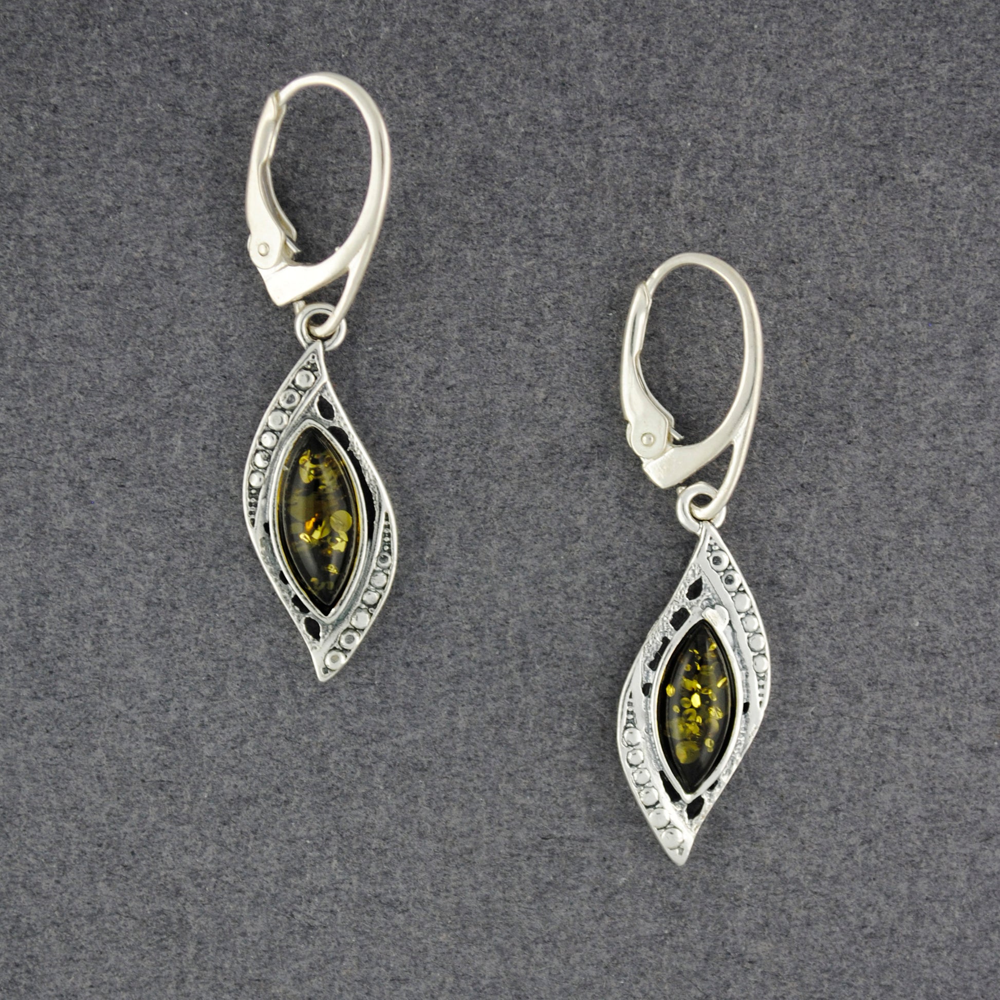 Amber is hardened tree resin from prehistoric forests 40 - 50 million years ago. Though its transparency and color varies, the most common colors are orange, yellow and brown. Amber can also range into milky whites and deep reds. Your piece was designed and set in sterling silver by Polish craftsmen. The amber carried at Green River Silver Co. comes from the Baltic region and is imported directly from Gdansk, Poland.