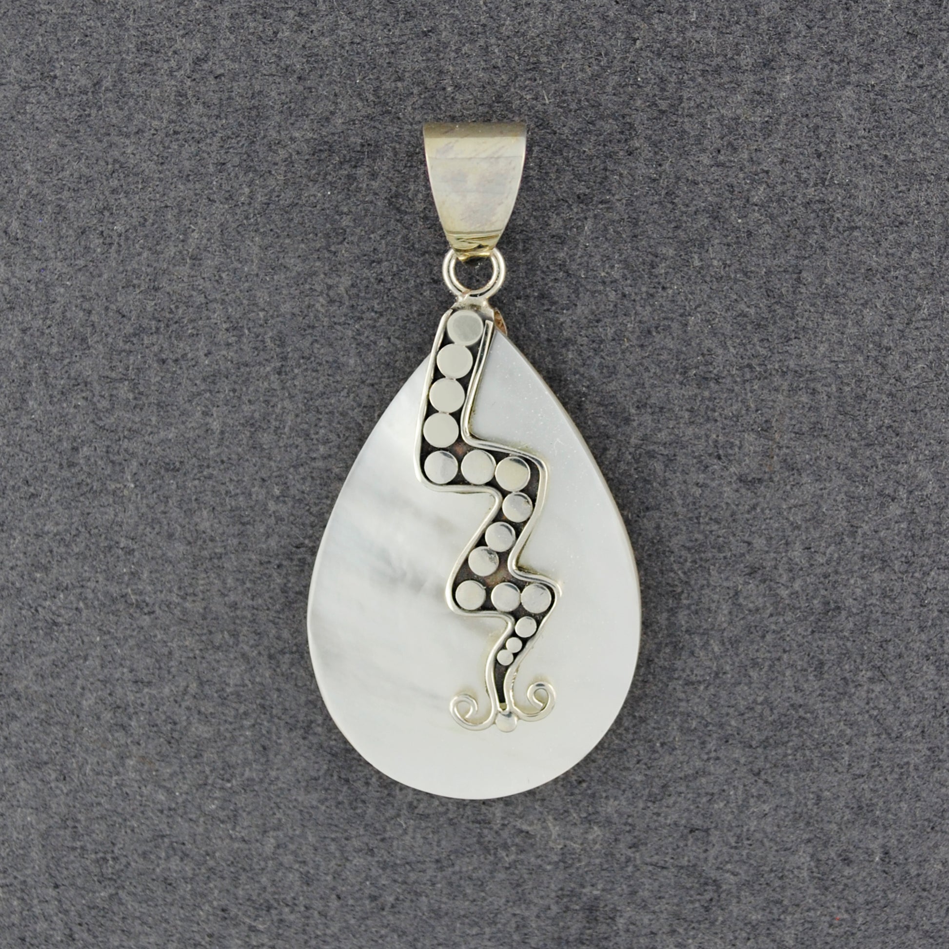 Mother of Pearl Teardrop with Wavy Dots Pendant