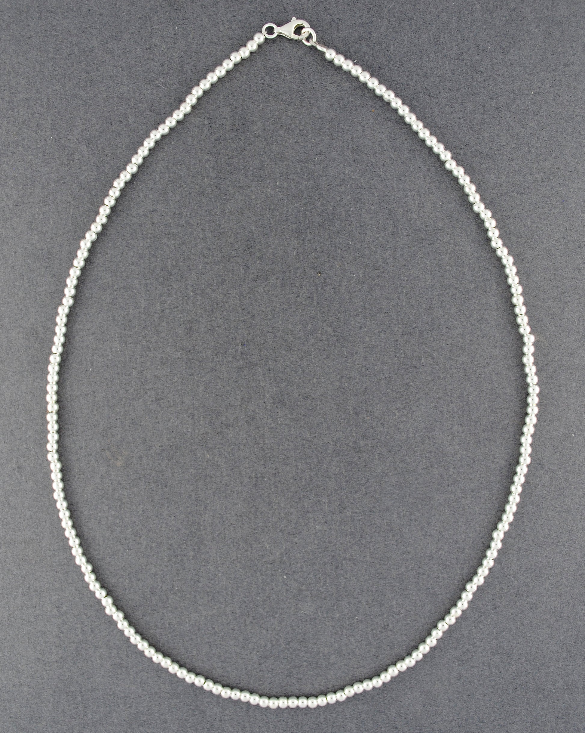 A timeless sterling silver beaded necklace. 3mm beads, available in assorted lengths.