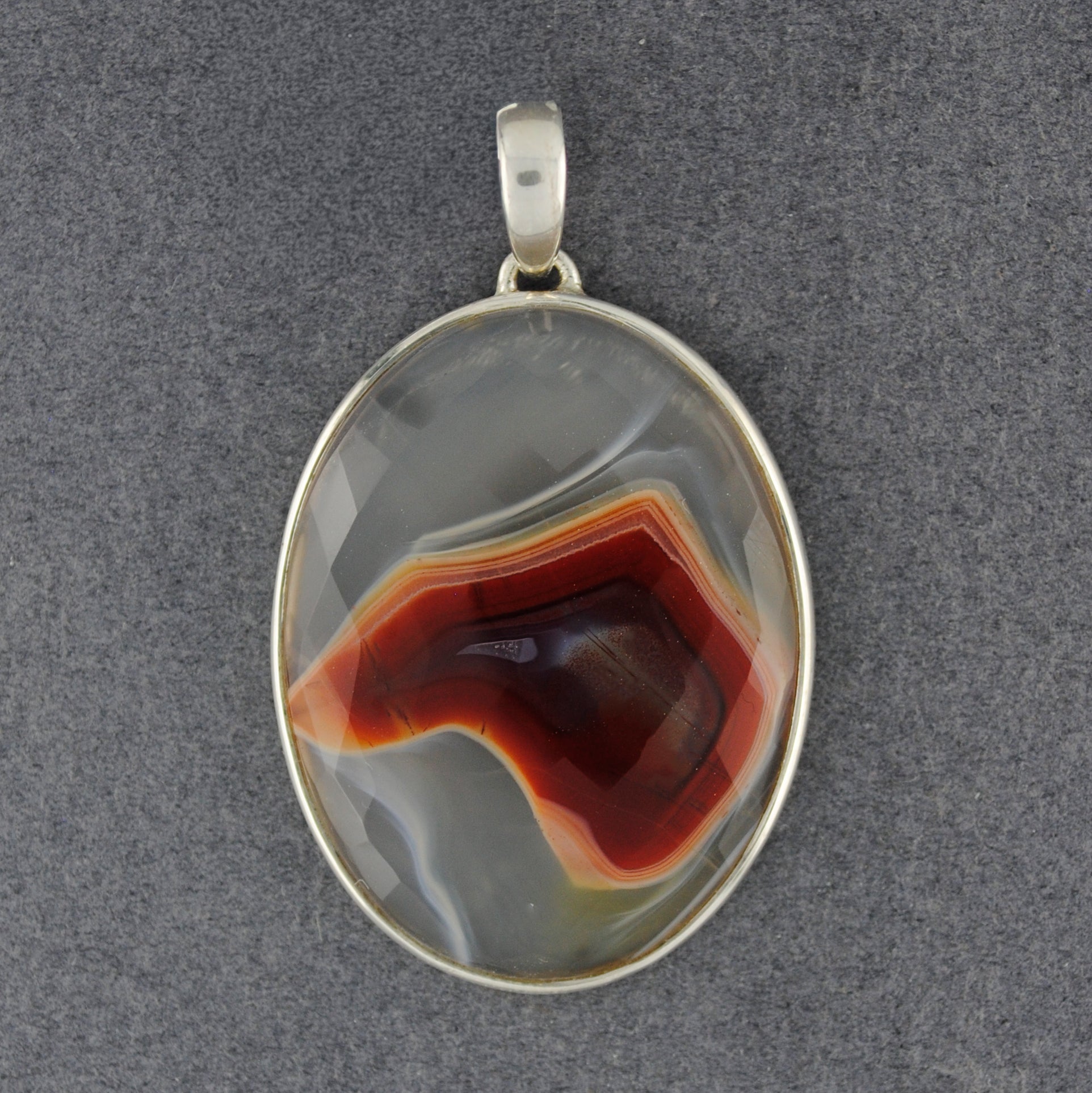 Sterling Silver Botswana Agate Faceted Oval Pendant