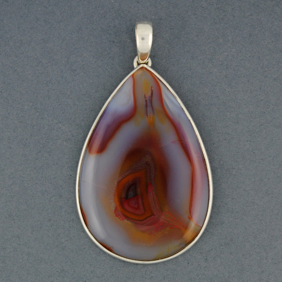 Sterling Silver Botswana Agate Large Orange Teardrop Pendant