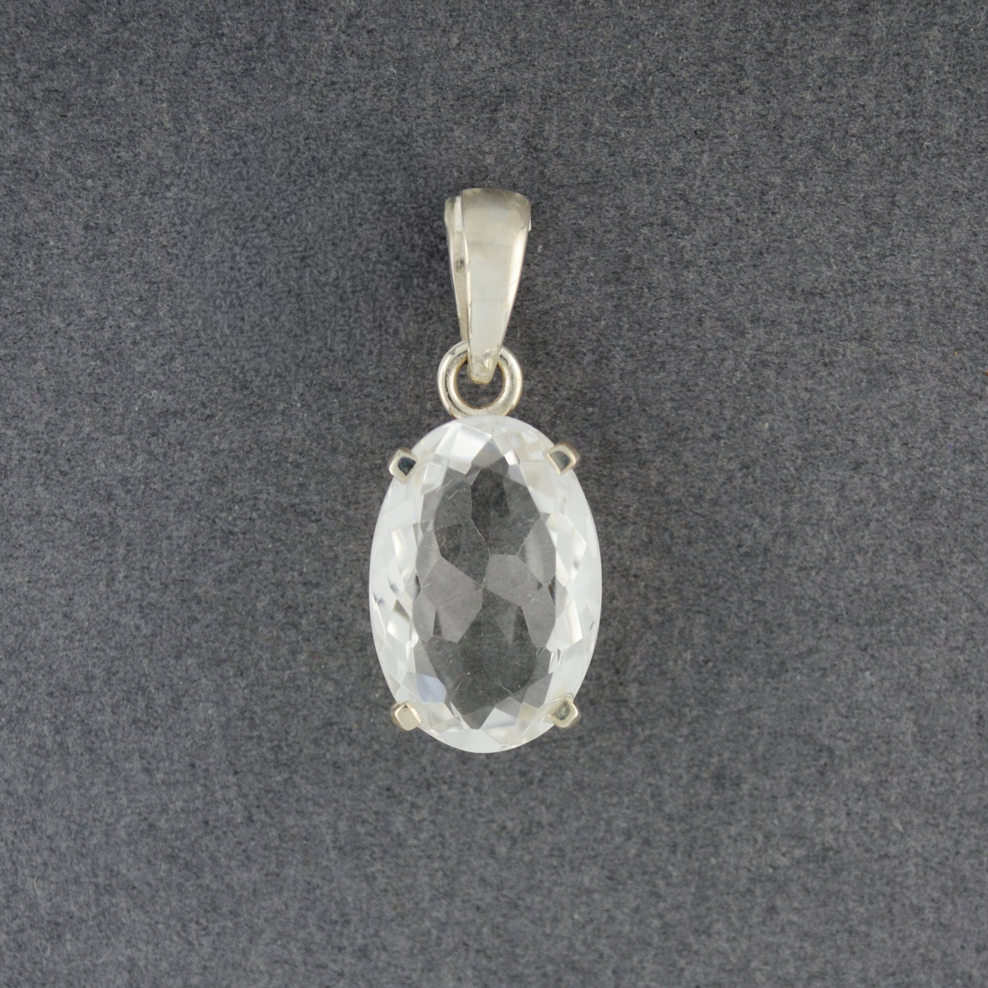 Sterling Silver Crystal Quartz Faceted High Set Pendant