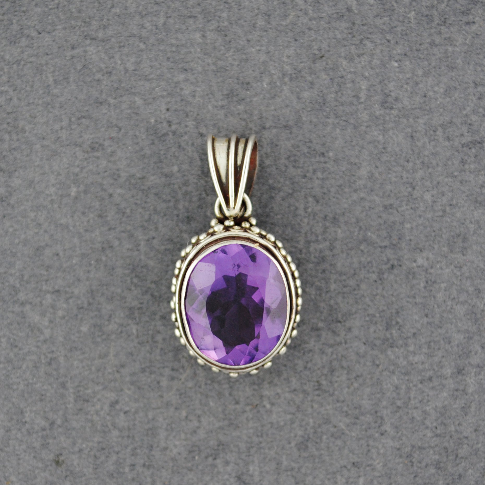 Sterling Silver Dotted Amethyst Oval Pendant