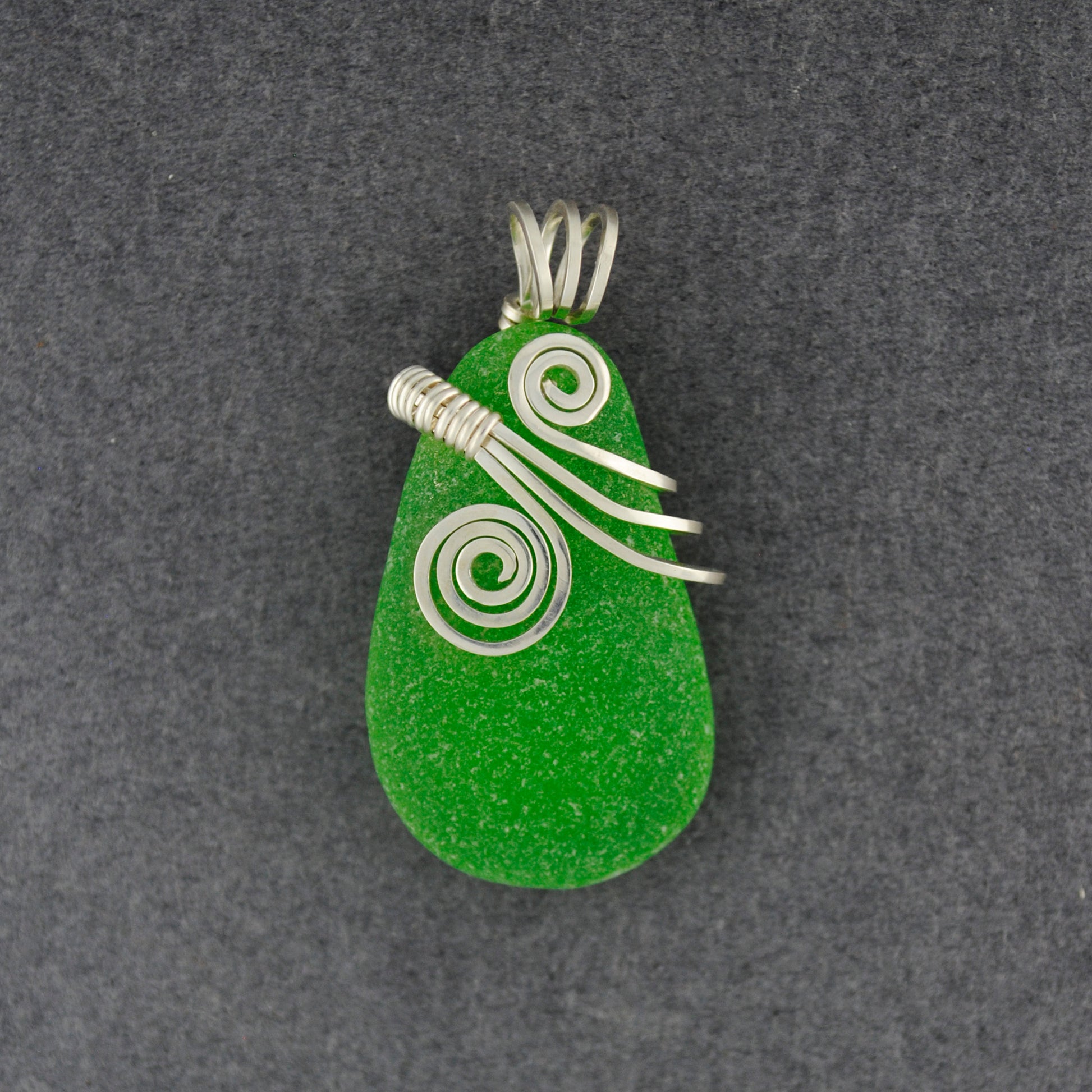 Sterling Silver Green Sea Glass Rip Tide Pendant