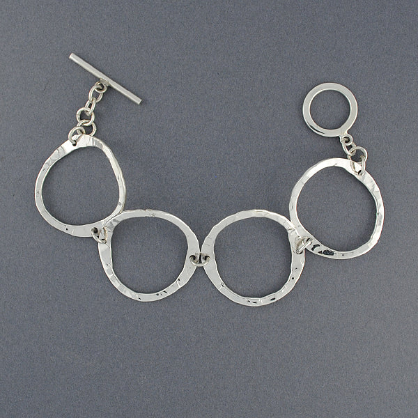 A fun bracelet featuring four open circles with a sparkling hammered finish.
