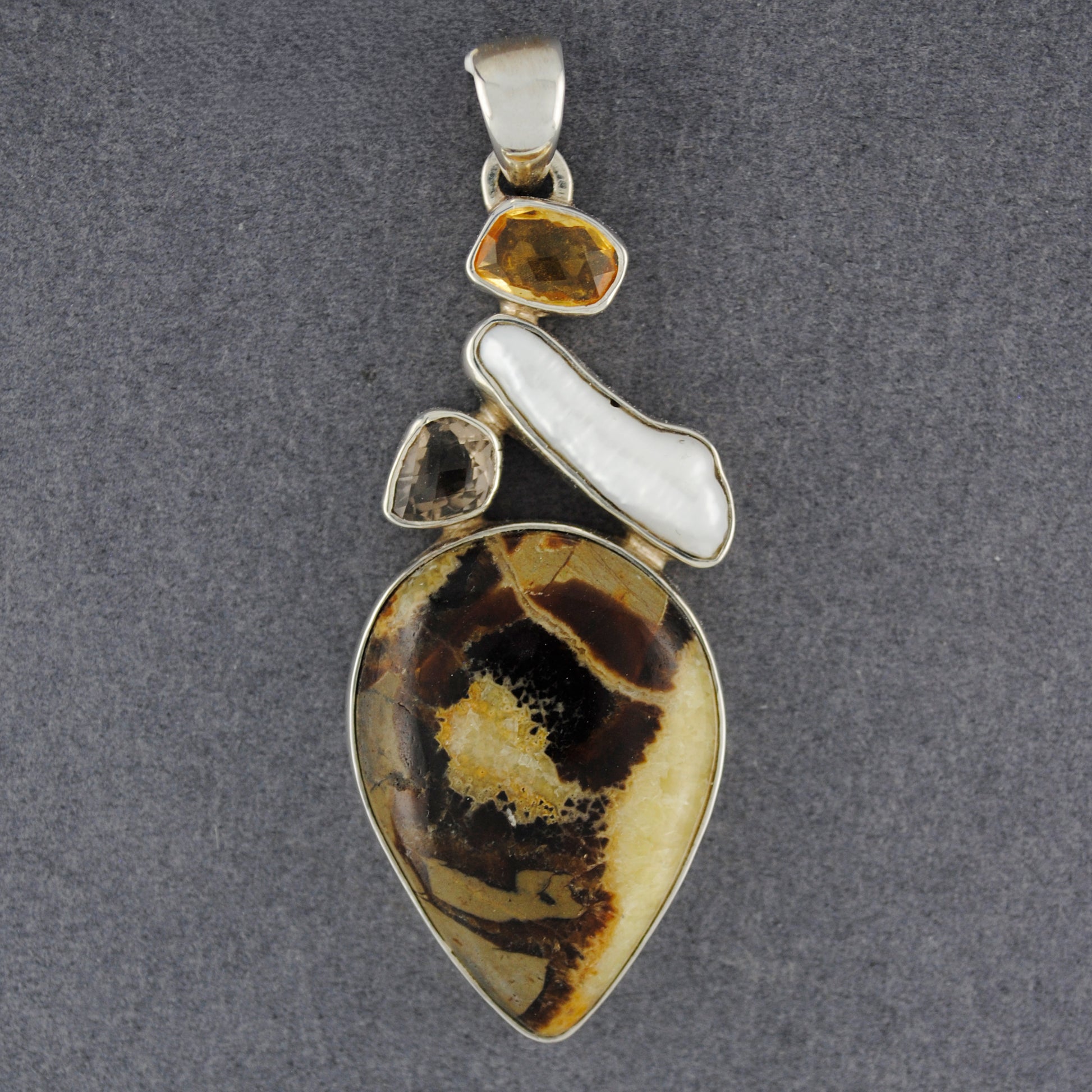 Sterling Silver Japsper, Pearl, Citrine and Smoky Quartz Pendant