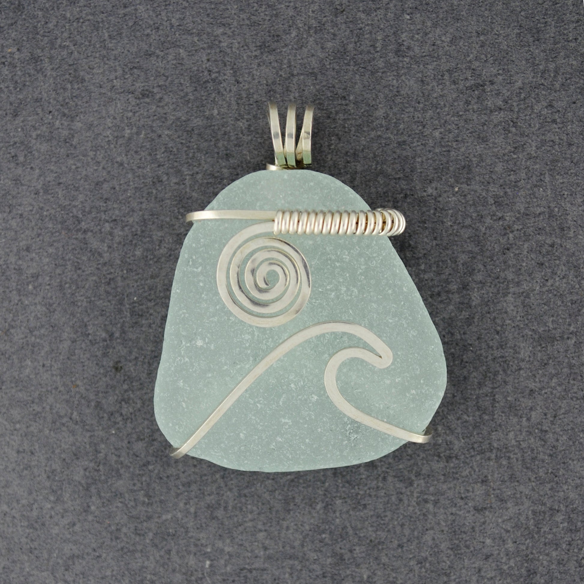 Sterling Silver Large Light Aqua Sea Glass Sun & Surf Pendant