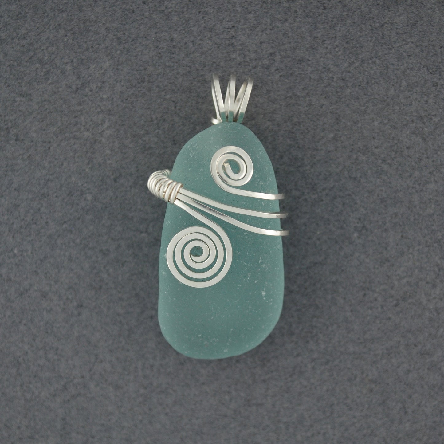 Sterling Silver Light Aqua Sea Glass Rip Tide Pendant