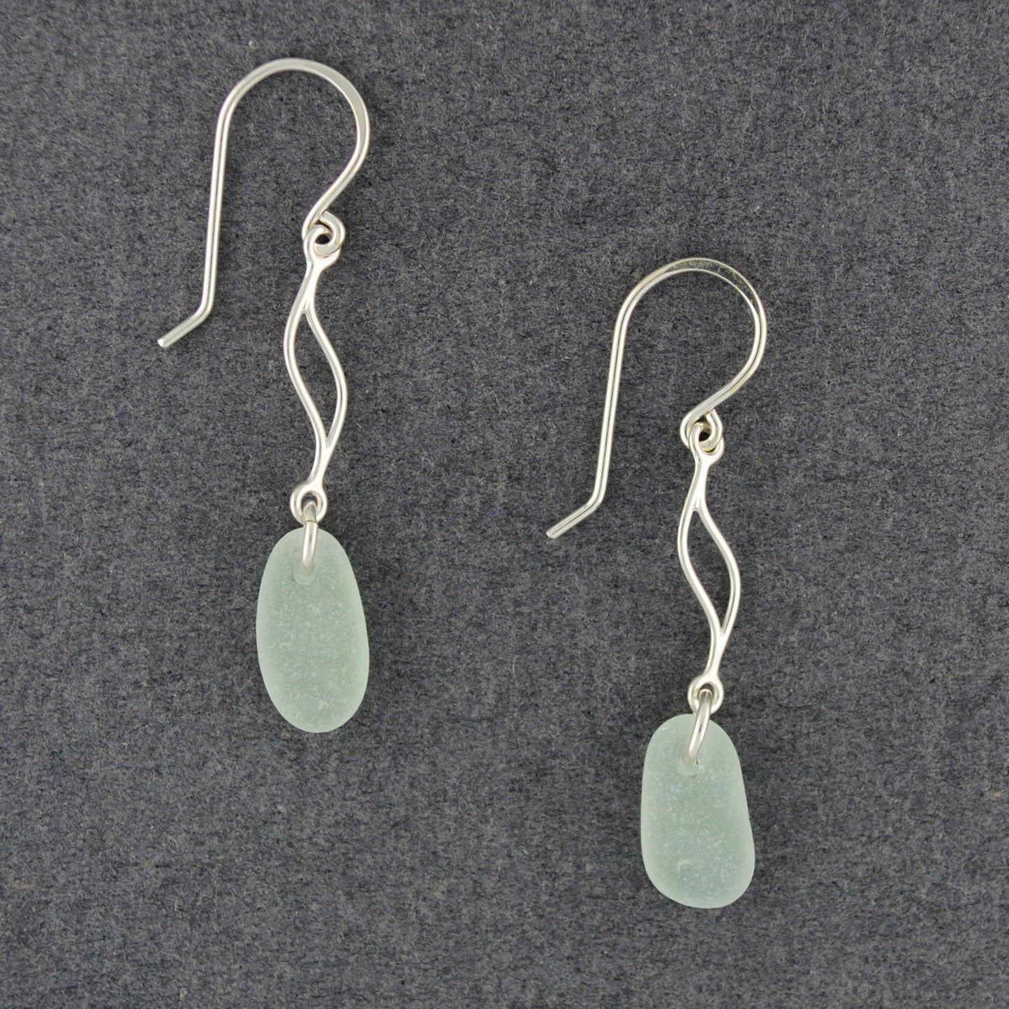 Sterling Silver Light Green Sea Glass Double Swirl Earrings