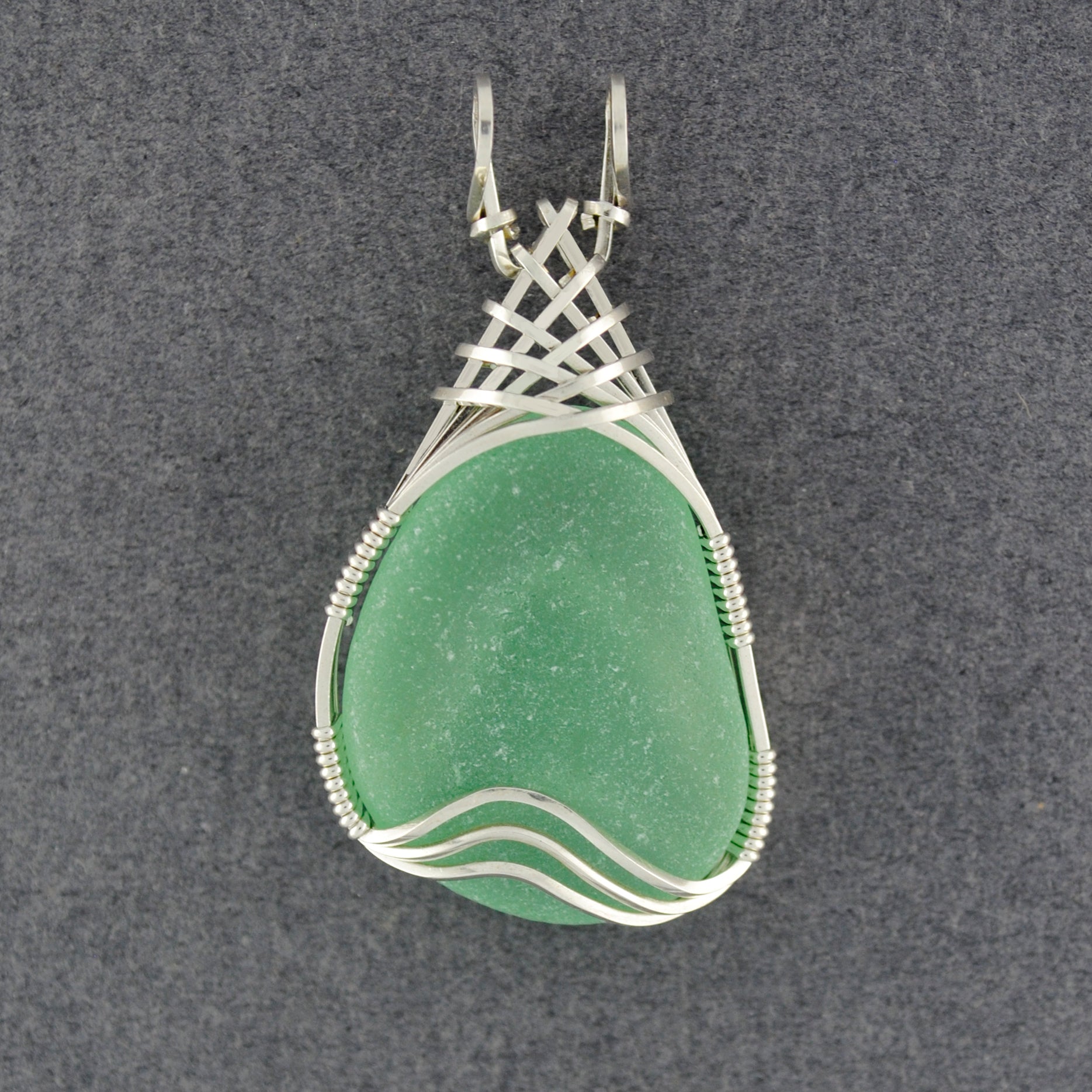 Sterling Silver Light Green Sea Glass Weave Pendant