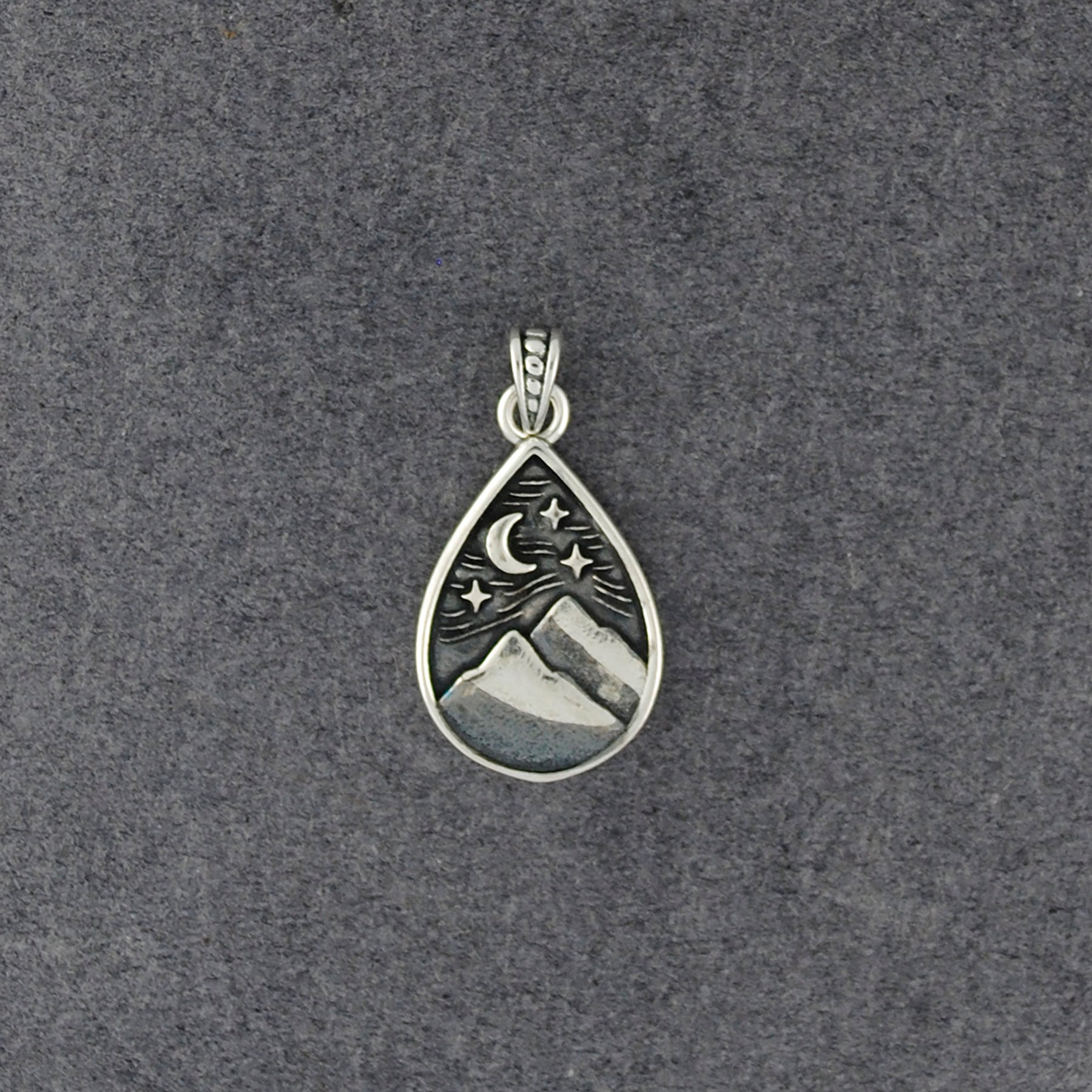 Sterling Silver Mountains & Moon Teardrop Pendant