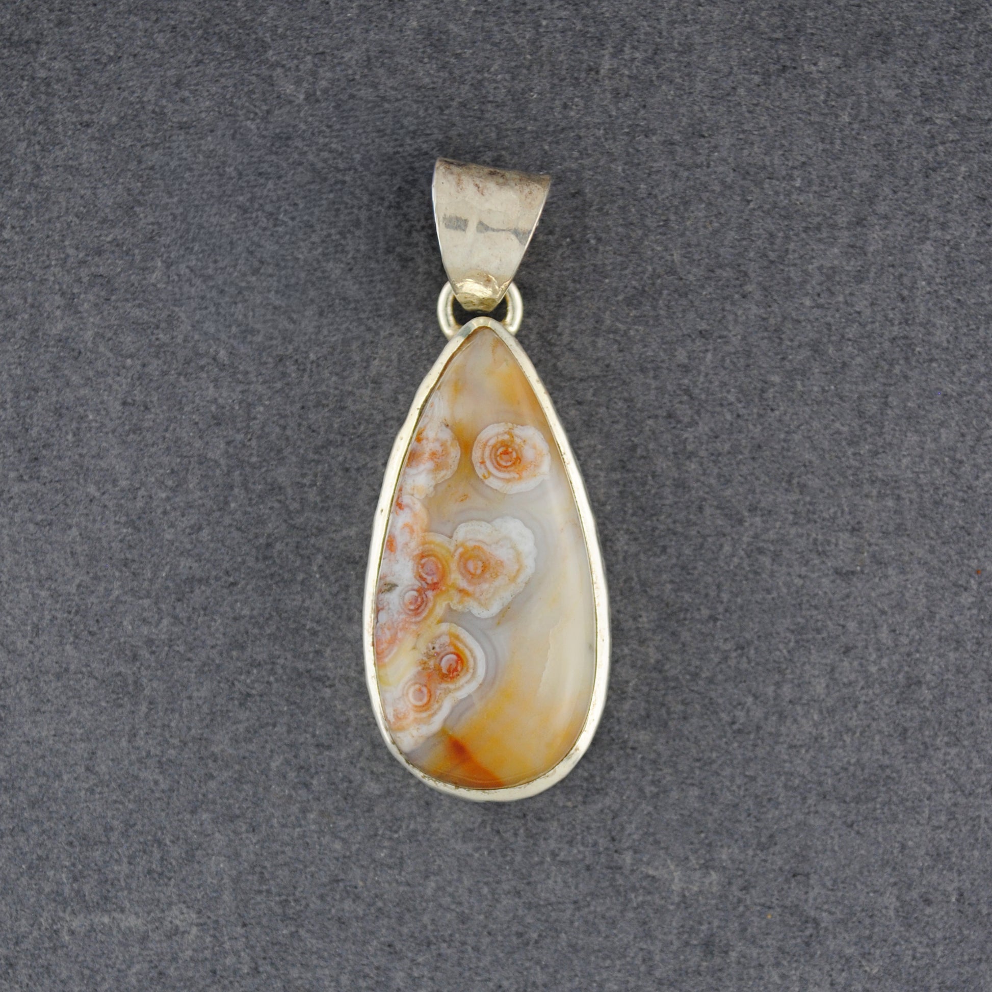 Sterling Silver Ocean Jasper Orange Hammered Teardrop Pendant