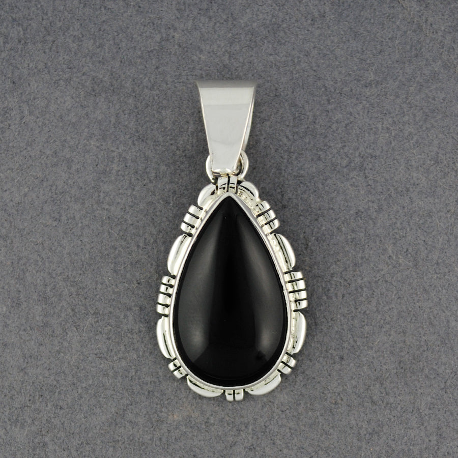 Sterling Silver Onyx Detailed Teardrop Pendant
