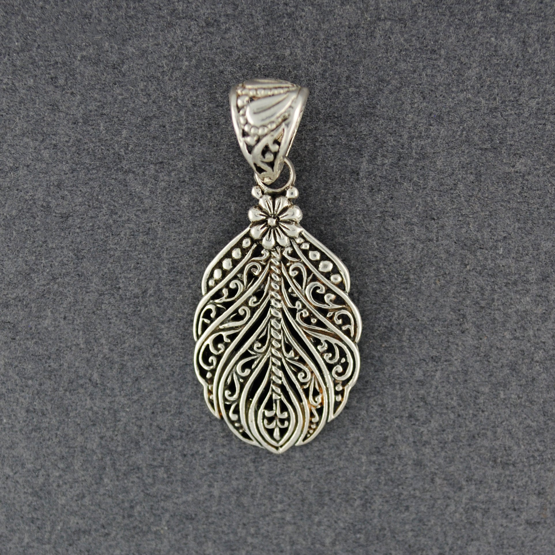 Sterling Silver Ornate Feather Pendant