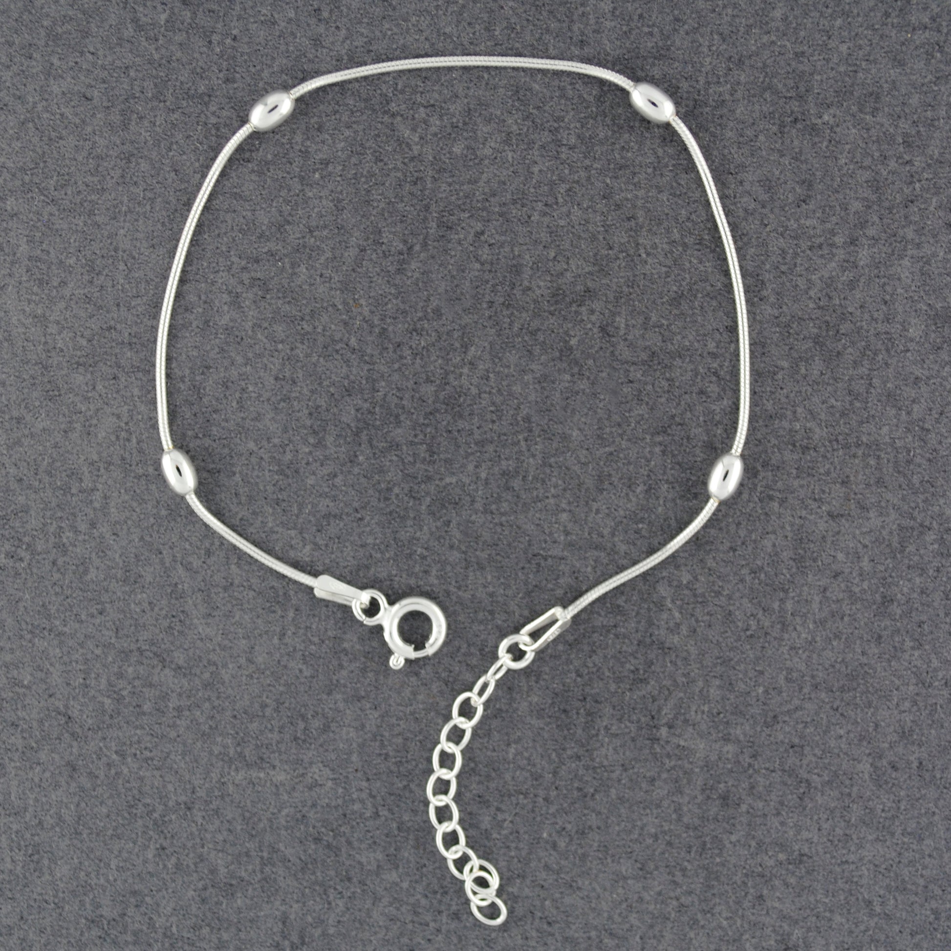 Sterling Silver Oval Beads on Snake Chain Bracelet