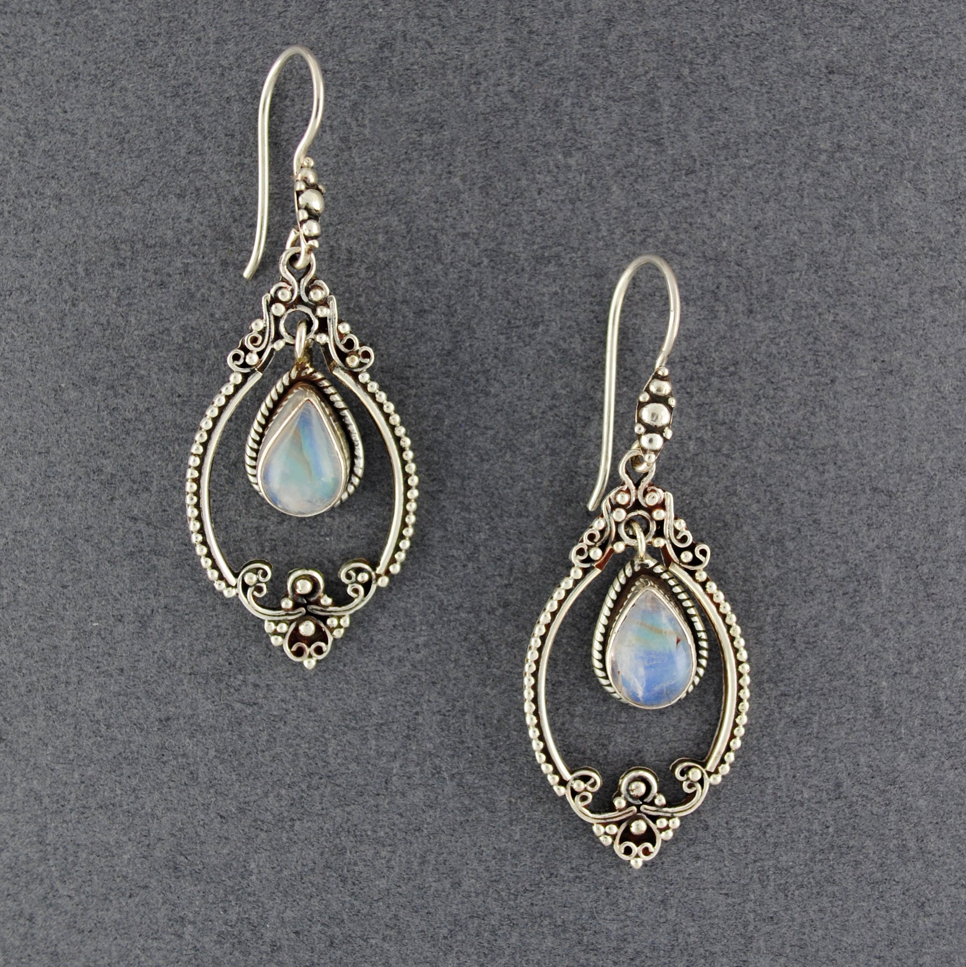Sterling Silver Rainbow Moonstone Chandelier Earrings