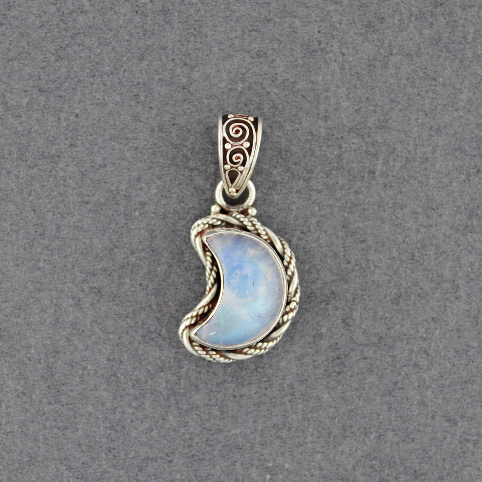 Sterling Silver Rainbow Moonstone Crescent Moon Pendant