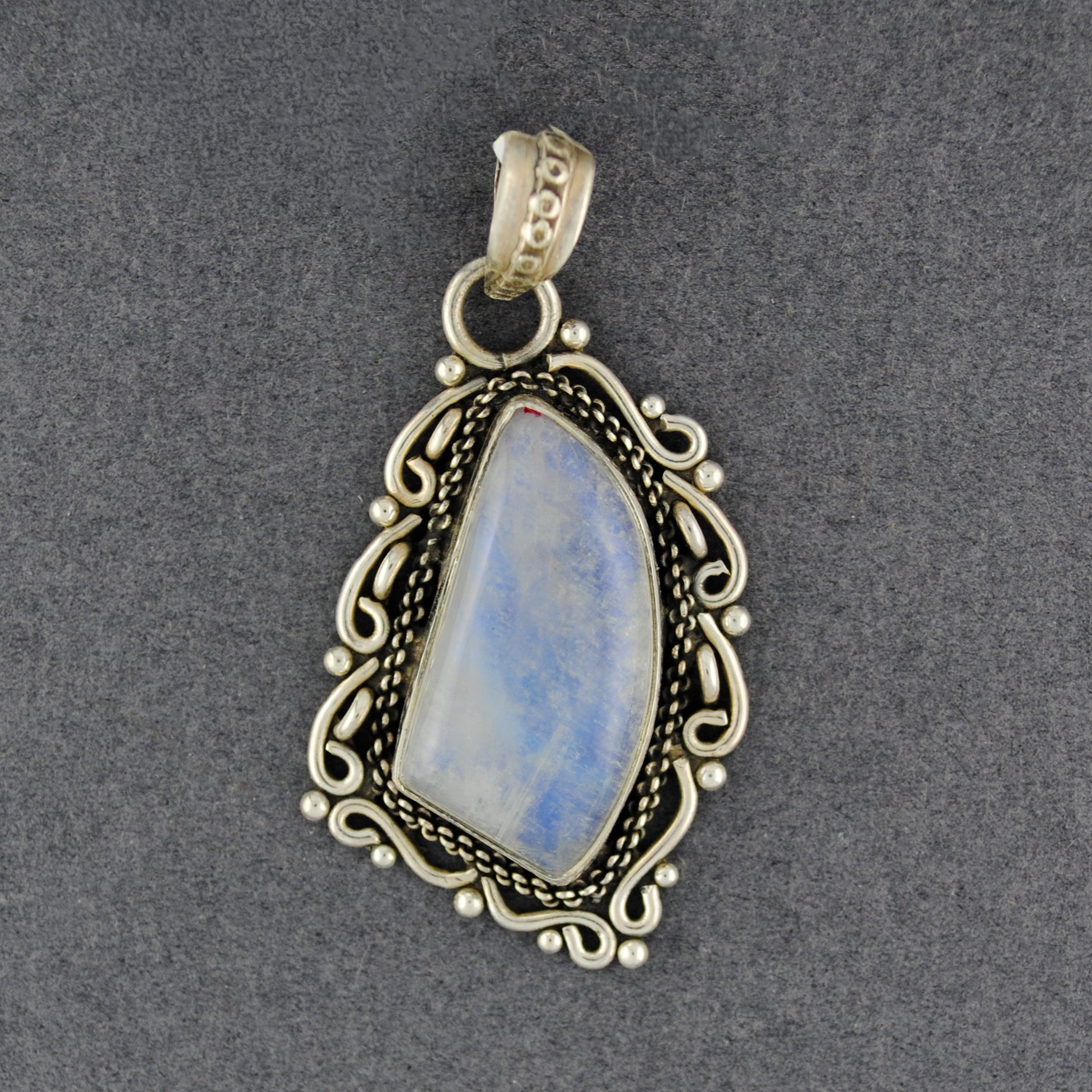 Sterling Silver Rainbow Moonstone Fancy Drop Pendant