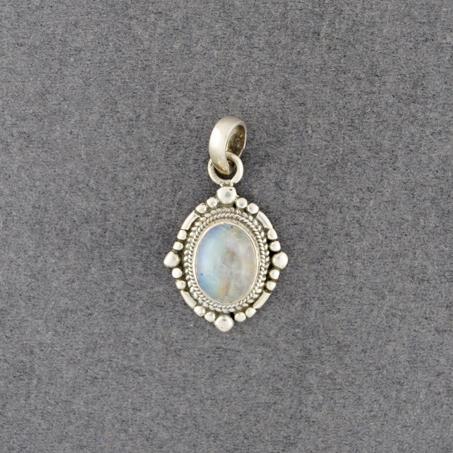 Sterling Silver Rainbow Moonstone Nepali Oval Pendant