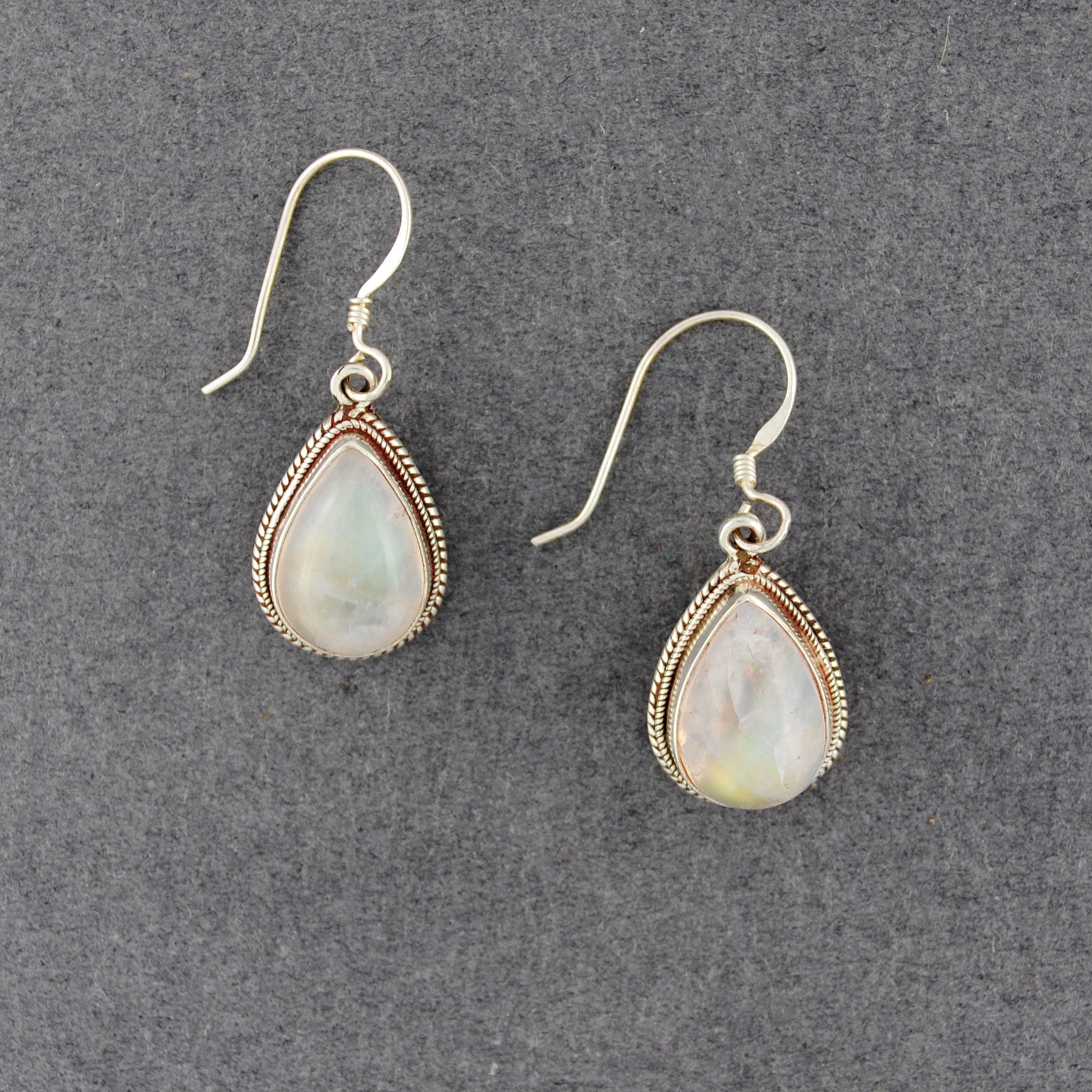 Sterling Silver Rainbow Moonstone Teardrop Earrings