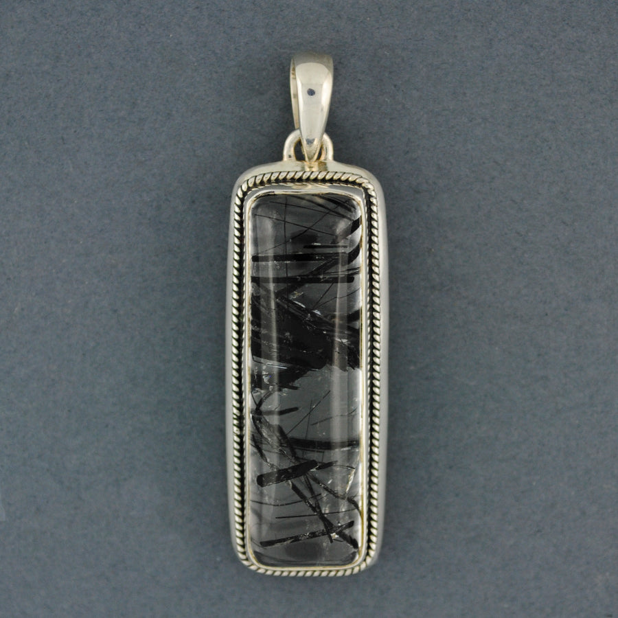 Sterling Silver Tourmalated Quartz Rectangle Pendant