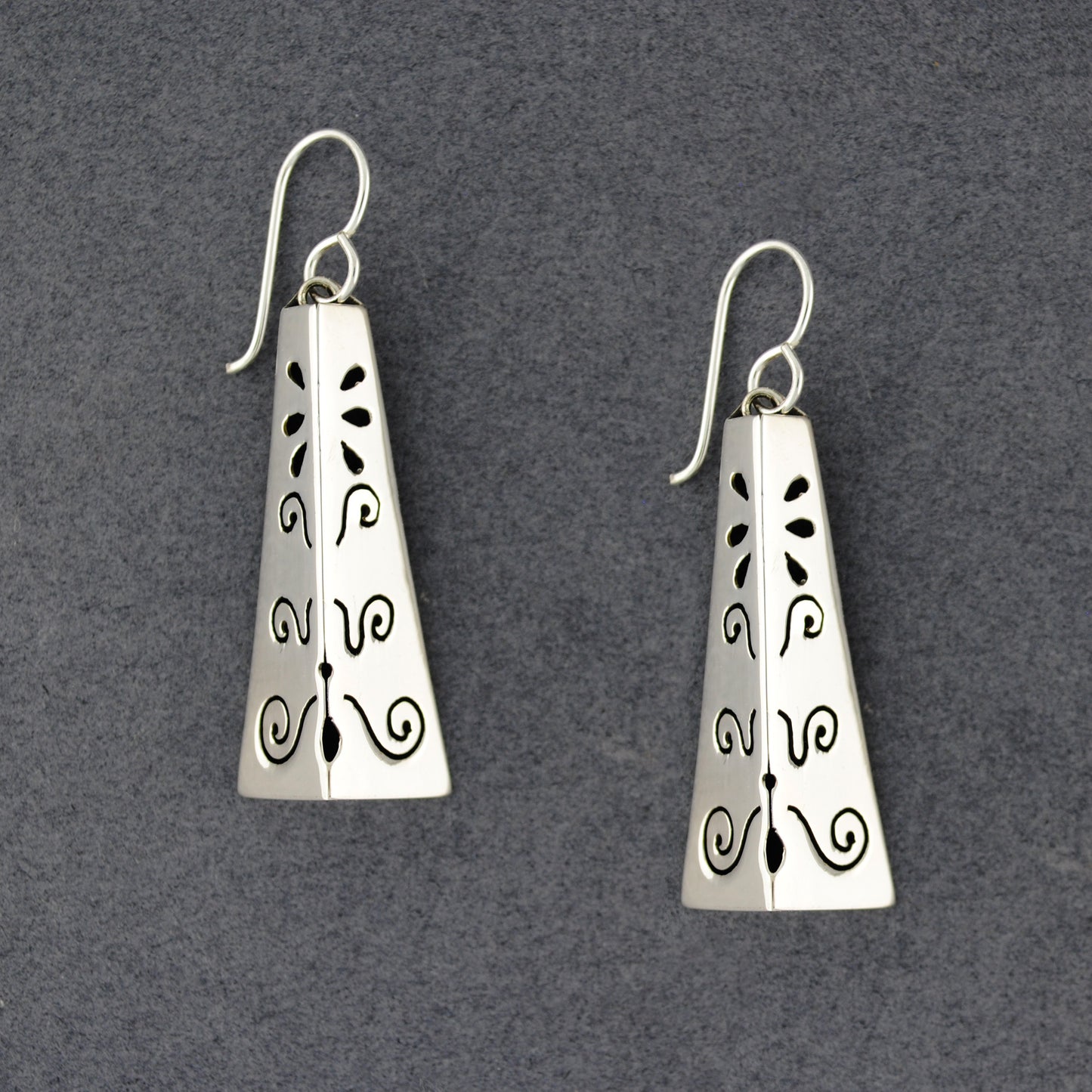 Fun, three dimensional triangle earrings with delicate cutout details.