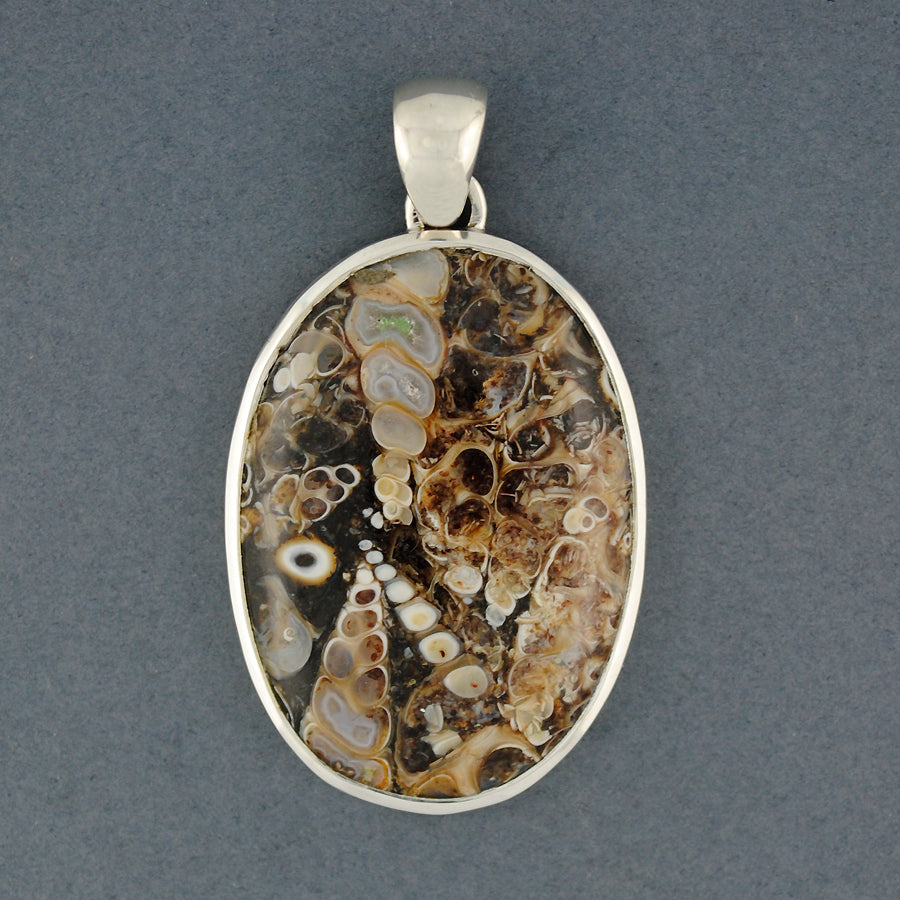 This unique stone pendant was crafted in the historic city of Jaipur, India. Jaipur, the capital of the state of Rajasthan, has been famous for it's traditional jewelry for many centuries. Rajasthan is an area rich in deposits of precious and semi-precious stones. Jaipur bazaars abound with classic tribal jewelry and are renowned for their expert stone cutters and designers. We hope you enjoy this beautiful piece of India's historic artistic tradition.