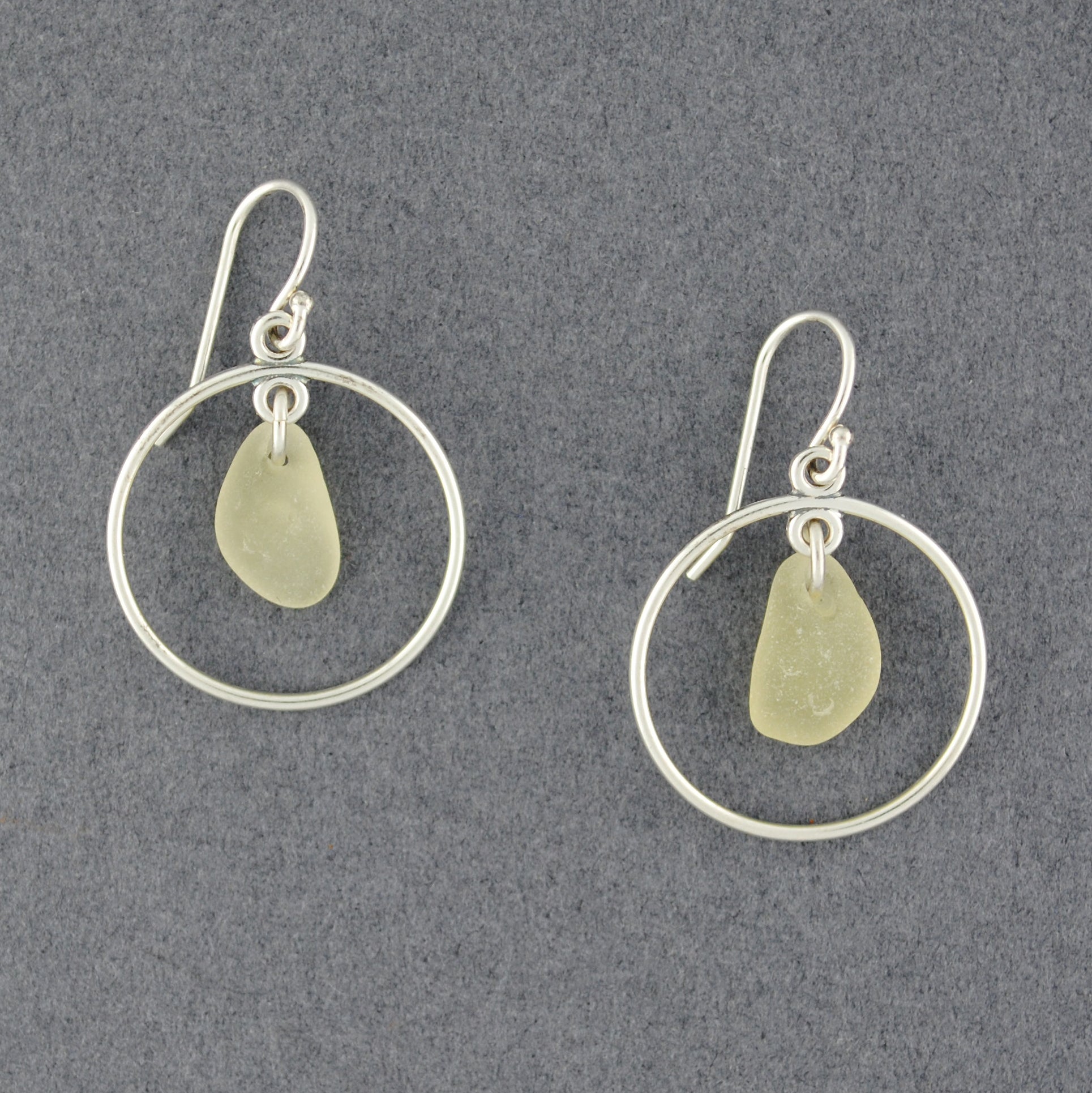 Sterling Silver Yellow Sea Glass Hoop Earrings