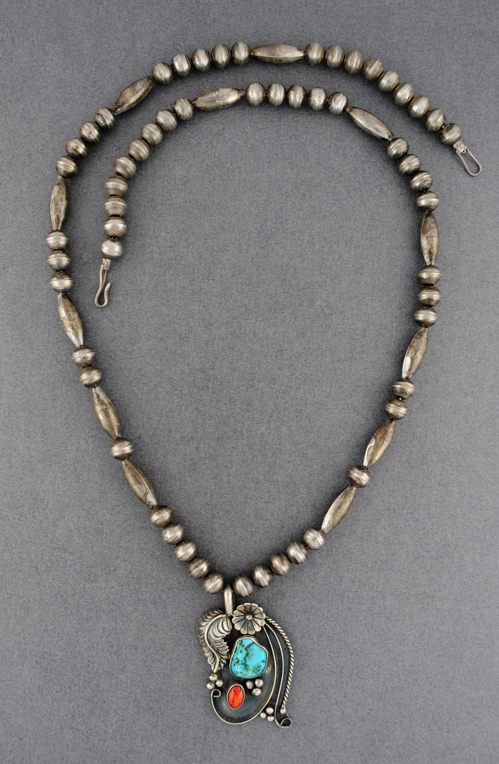 Turquoise & Coral Navajo Beaded Necklace